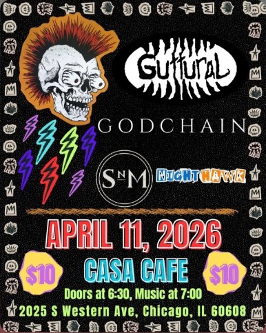 « All Events This event has passed. Case Cafe April 11 @ 7:00 pm – 11:30 pm With Godchain, SnM, and NightHawk $10 Casa Cafe 2025 S Western Chicago, Illinois 60608 United States + Google Map Add to calendar Google Calendar iCalendar Outlook 365 Outlook Live